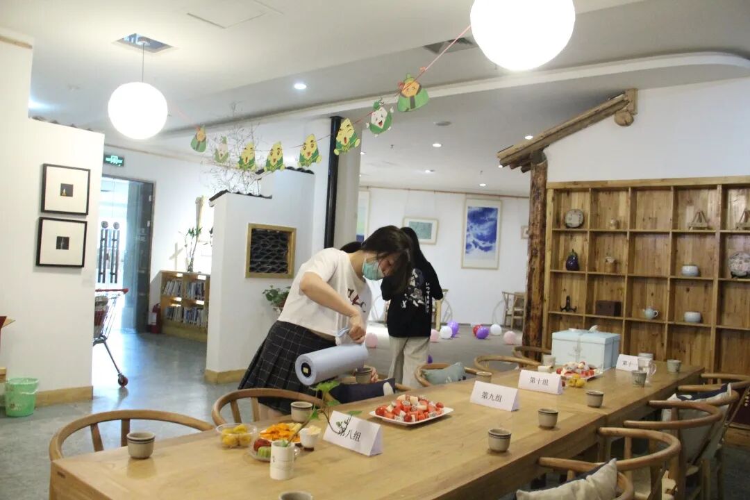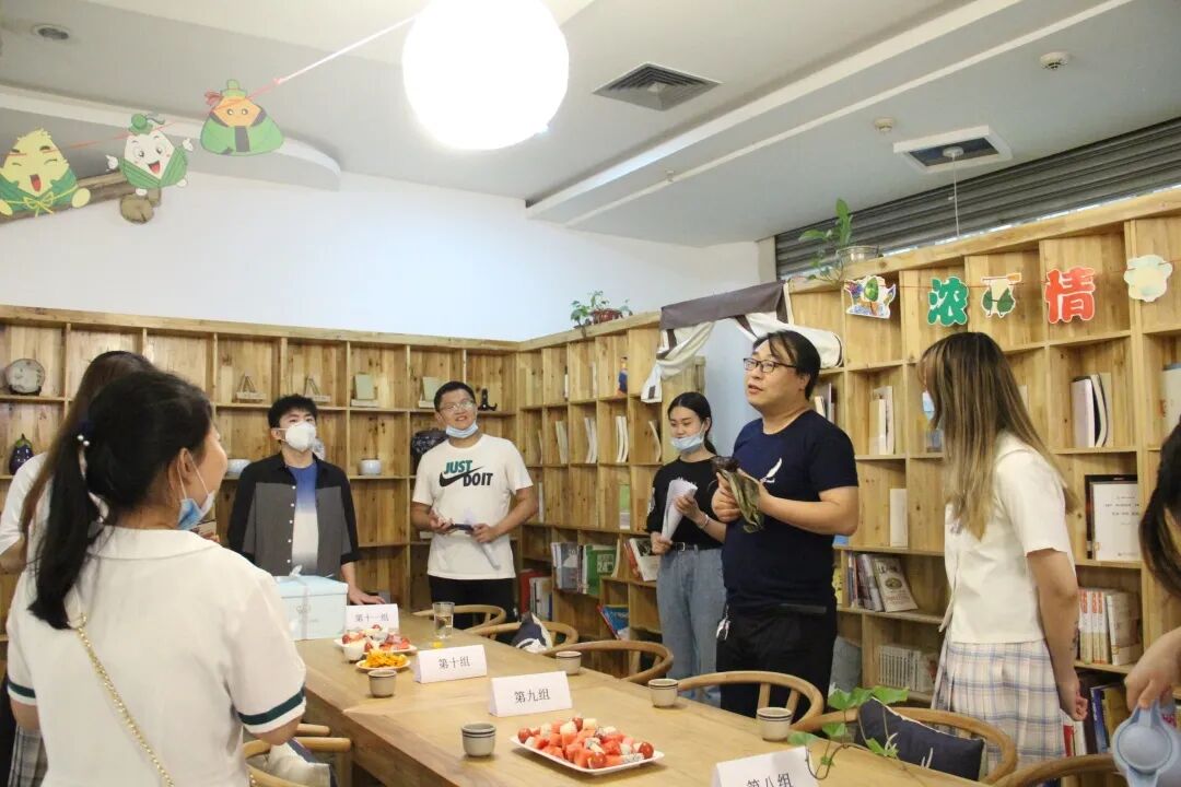 每当老师进入茶舍时,就会拿到一个号码,不同的号码对应着不同的组。随着活动开始,主持人李静老师身穿一身汉服首先走进了人群中,大家都响起了掌声和欢呼声。由于疫情的原因,今年的端午和以往有些不同,但这仍不会影响我们相聚在这里,共同品尝美食、欢度端午。