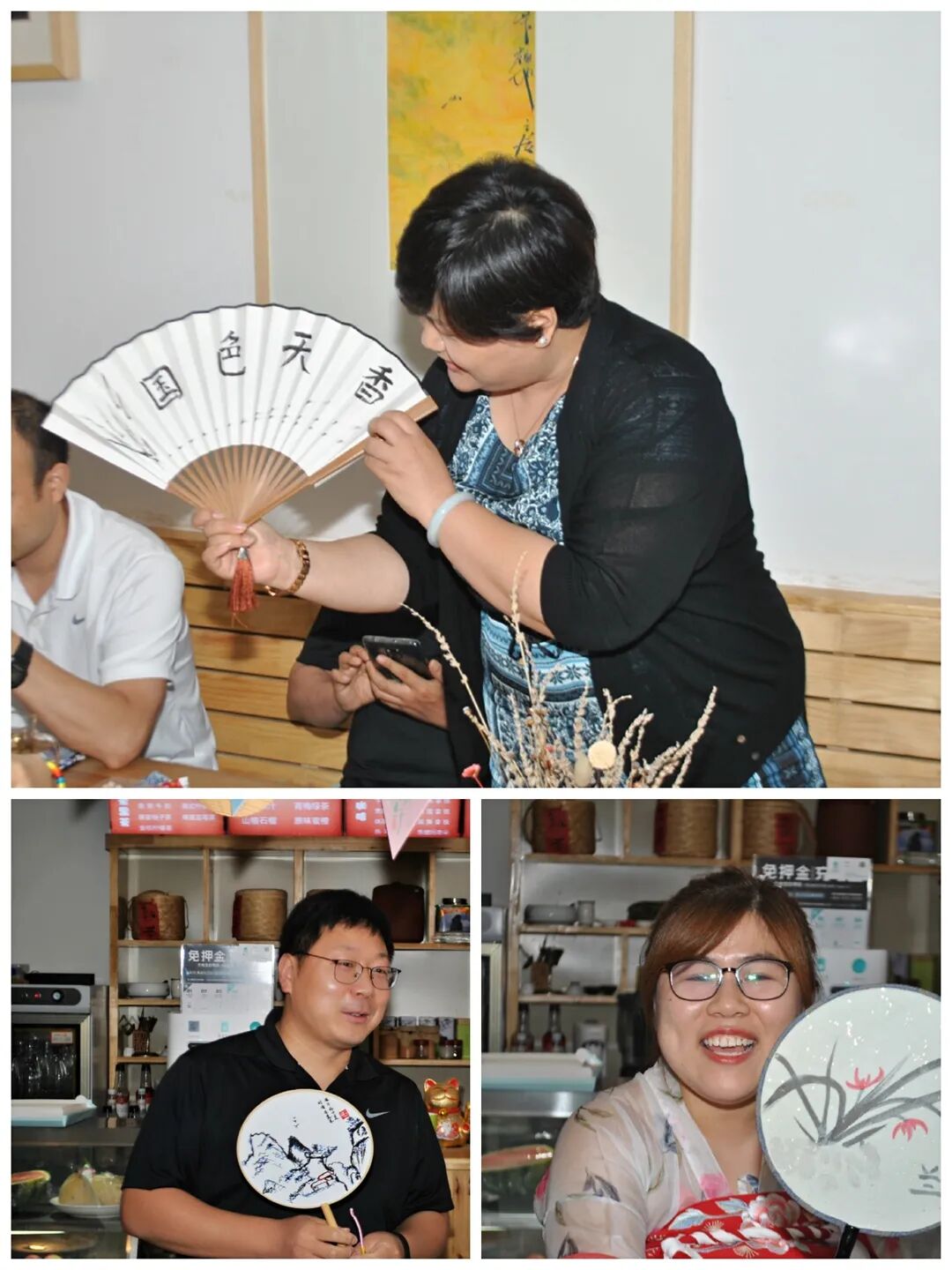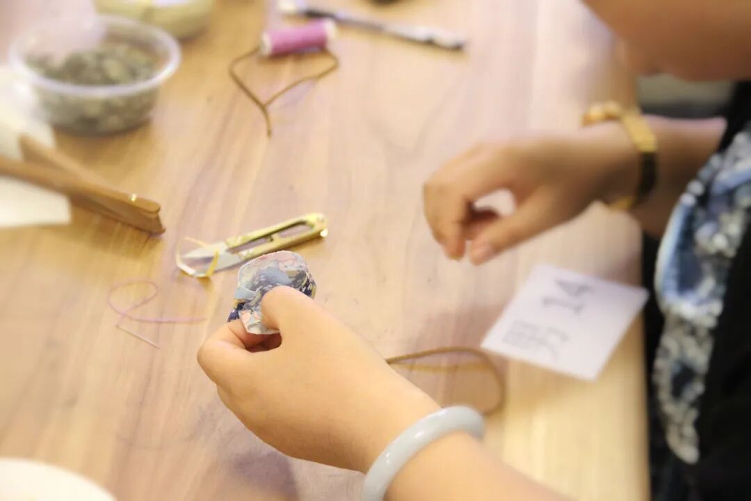 精彩节目之后,就到了本次活动的游戏环节。每组老师都分别拿到了一把扇子和三个香包,通过这个展示环节,不但锻炼到了老师们的合作精神,同时也让老师们战胜了自己的胆怯。有些老师在刚开始时一直不敢挑战自己,但通过合作,也渐渐得心应手,甚至有些老师的作品让人看后连声称赞。