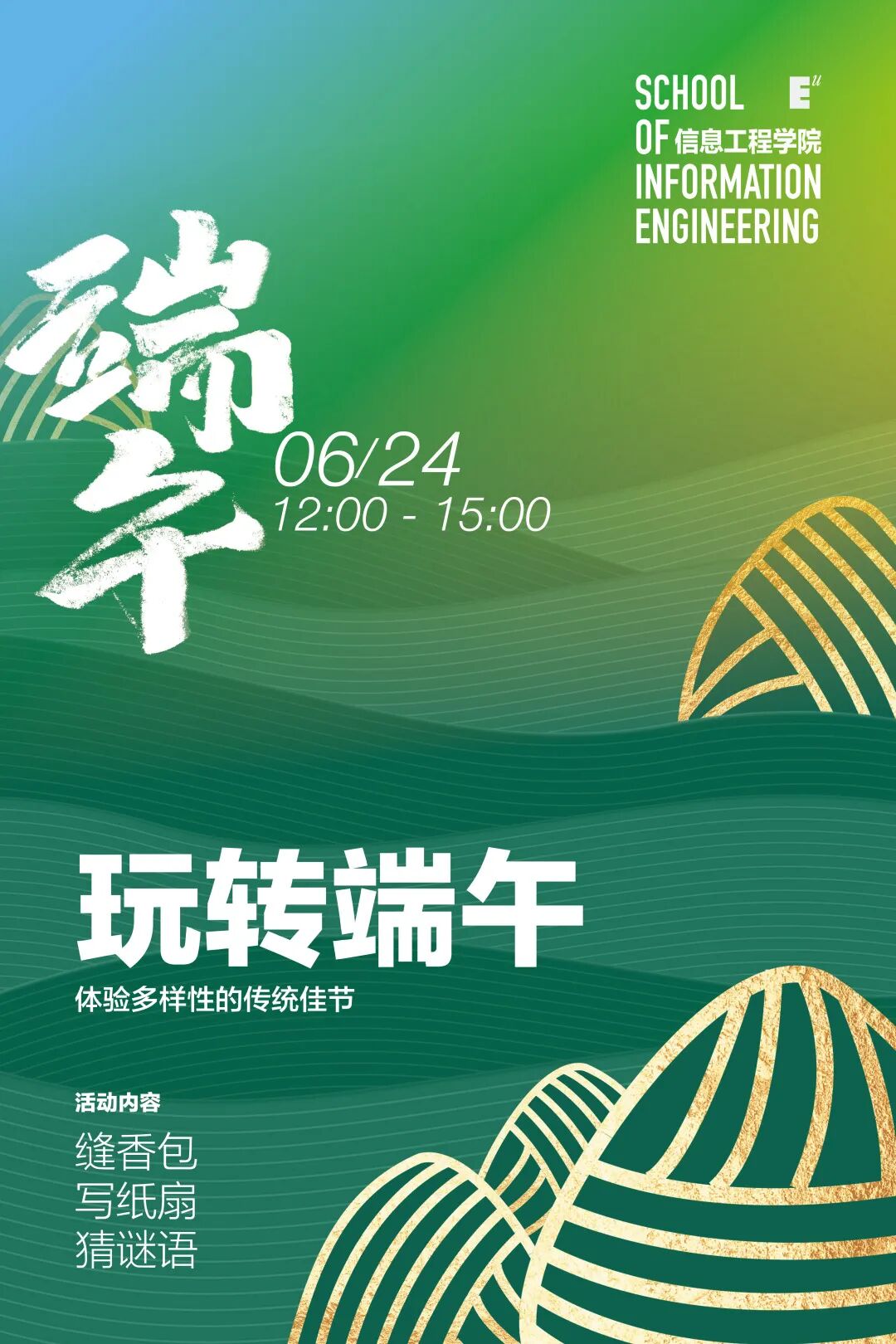 中华民族上下五千年的历史,造就了博大精深的文化,从而也留下了属于我们自己的节日,端午节便是其中之一。在这一天,人们总会相聚在一起吃粽子、包香包。6月24日,端午佳节之际,信息工程学院在茶舍举办了一场“玩转端午”的欢乐活动。