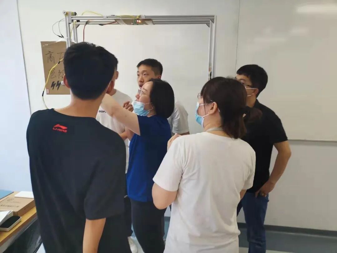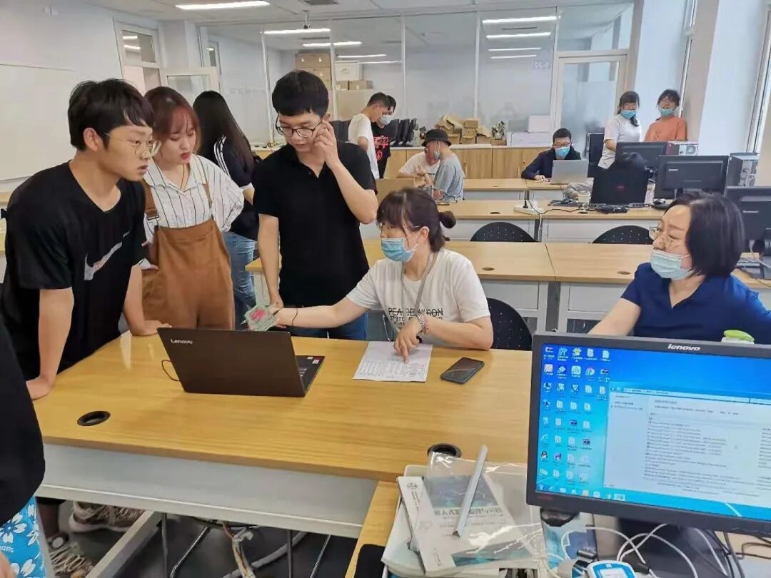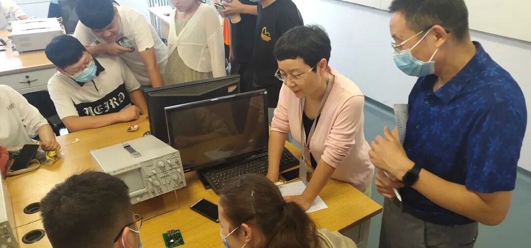 电子设计创新大赛初赛按照专业、年级分为三组同时进行,评审组长为侯传教老师,评审成员为侯亚玲、董敏、刘颖、李敏、杨磊五位老师。初赛设置作品展示、现场答辩两个环节,根据作品的实用性、完成度、创新性三个维度进行评分。
