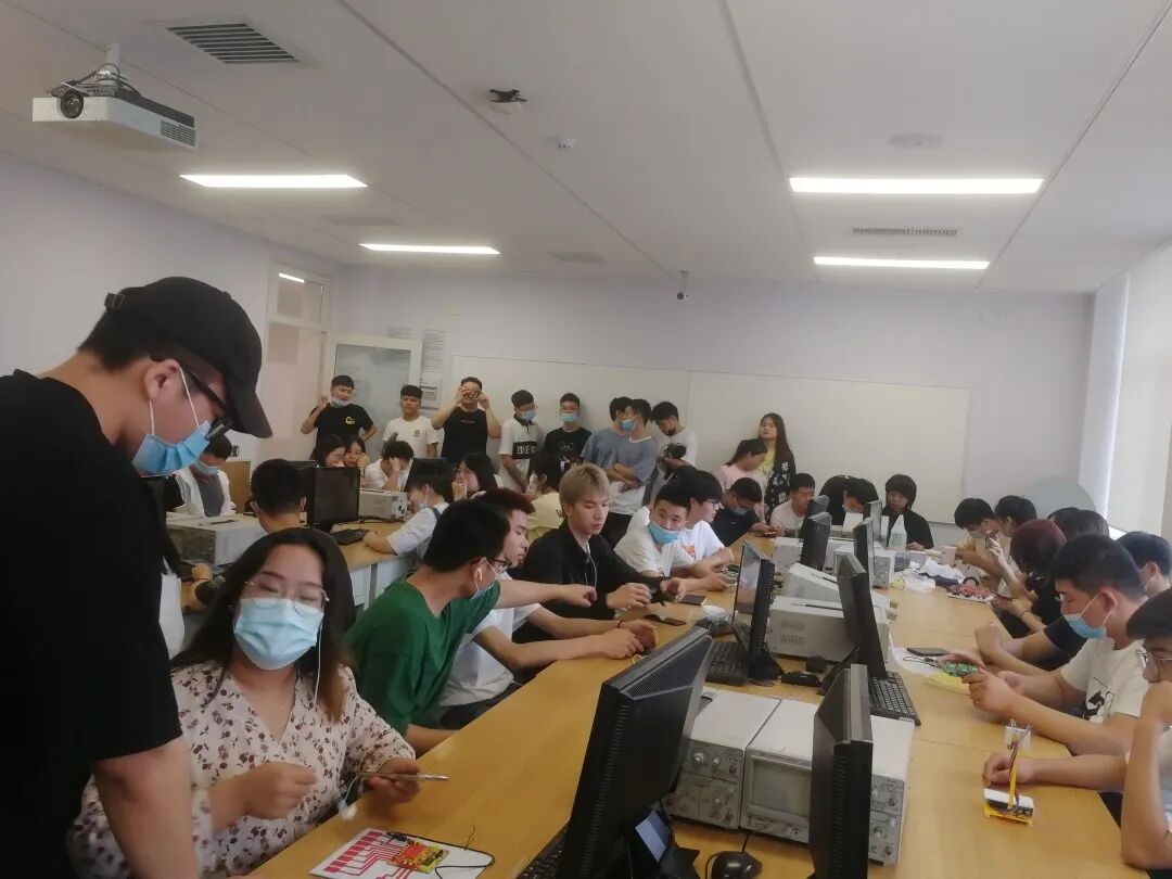 6月28日下午,西区B座三层,信息工程学院首届电子设计创新大赛初赛正在如火如荼的进行,本次比赛共收到了86组参赛队的报名,跨越三个年级、四个专业,二百六十多名学生参加。窗外阴云密布,室内初赛现场气氛高涨。