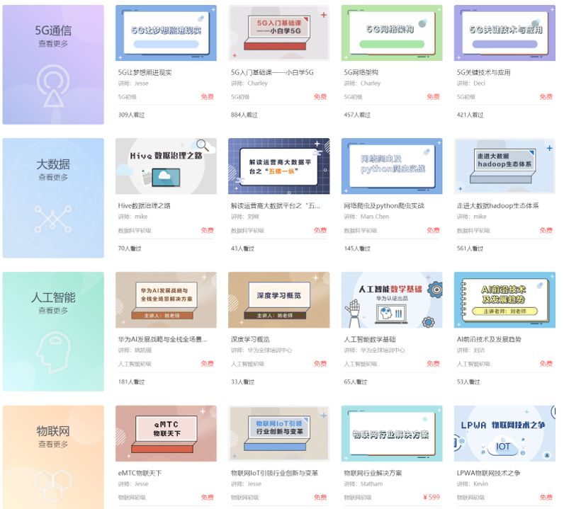 提供覆盖了5G、人工智能、大数据、物联网等在线课和直播课。