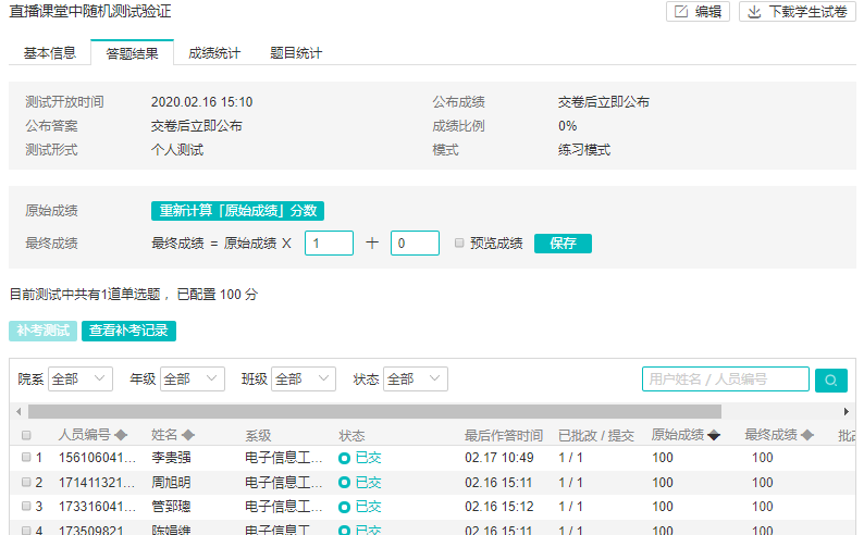 推荐理由:激励学生参与直播课程的积极性,并在最终成绩有所体现。