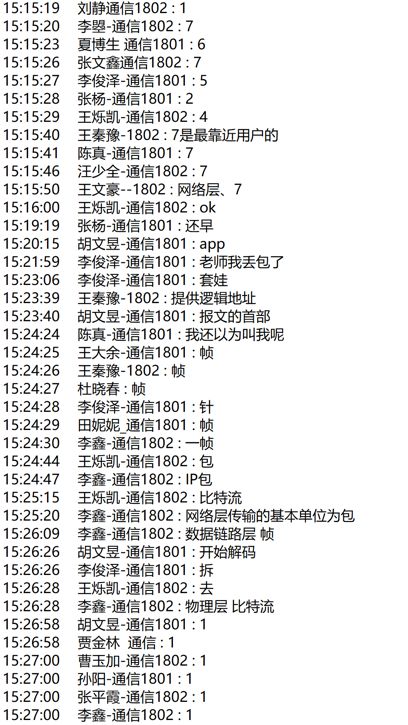 同时,为了能对学生的学习过程进行更好的督促,针对《计算机网络》这种理论性强的课程,我要求学生必须记笔记,然后每次课结束发到畅课系统的讨论版上进行打卡。为了能了解授课效果,及时调整授课方法和进度,我也利用畅课系统进行了课堂反馈和课后测试。