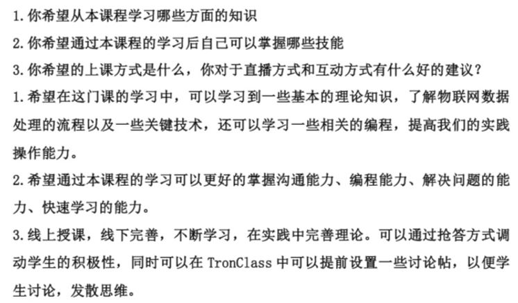 在开学第一课的时候以作业形式来调查大家对于本门课程的期望,以及对于直播的建议,对于如何实施个性化教学起到了辅助作用。