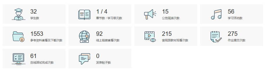 真的,没有看到发布的数据之前我一无所知,但是当我真正打开自己的创课进去一看,确实很惊讶,这是一个只有32人的班级在近一个月内创造的数据,最下方那个小小的“0”是因为我把讨论都放在微信群里了。