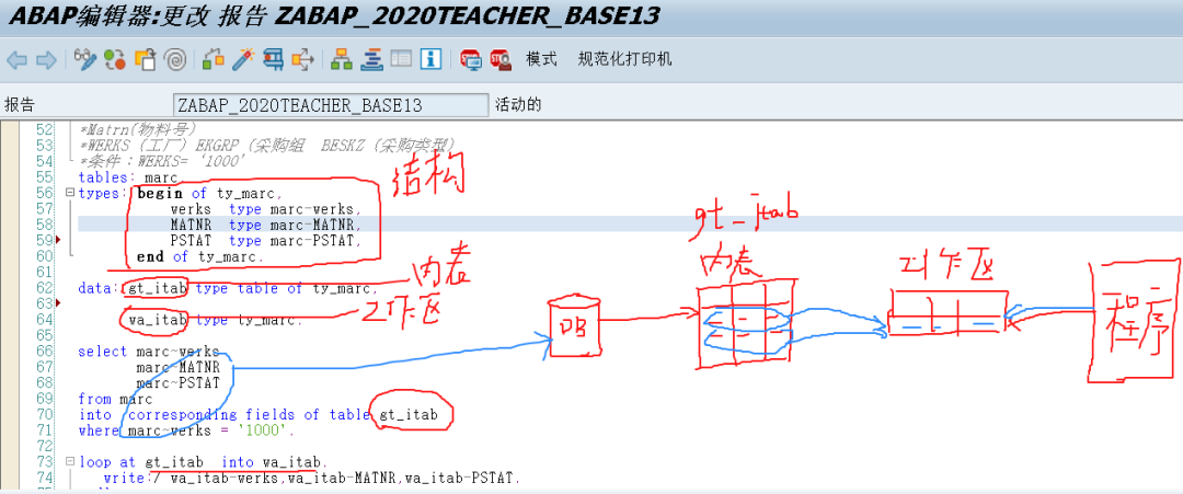 比如在SAP概述单元备课时,将该部分内容设计为学生通过查阅资料分享SAP R3系统框架、常用技术及开发蓝图,教师总结。在内表单元备课中,考虑到内表是SAP ERP系统开发中核心内容,各种参考教材没有介绍内表的工作原理,直接讲述内表操作,不方便学生理解及快速应用。教学设计时将该部分内容录成微课,让学生课前自主观看学习,课中再去总结并进行应用。