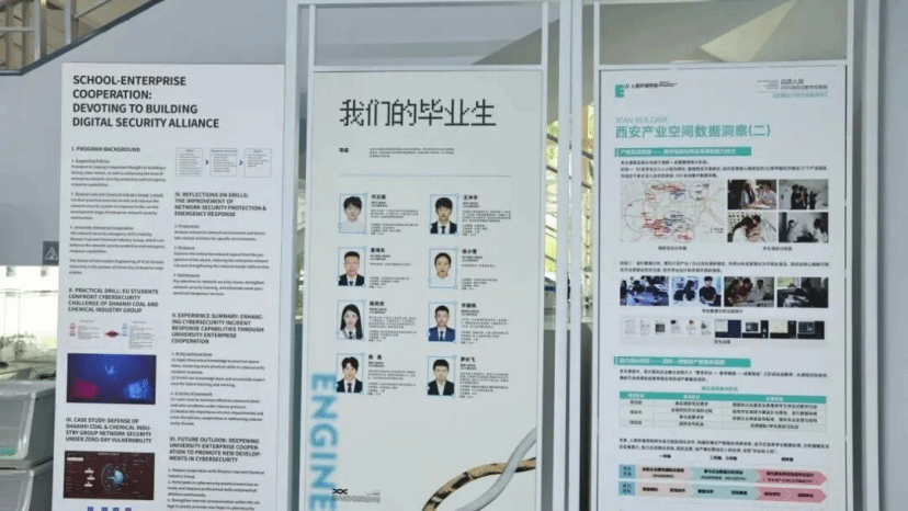 学院联合奇安信、软通动力、杭州安恒等10余家行业头部企业,在迎新现场设置了企业展区: