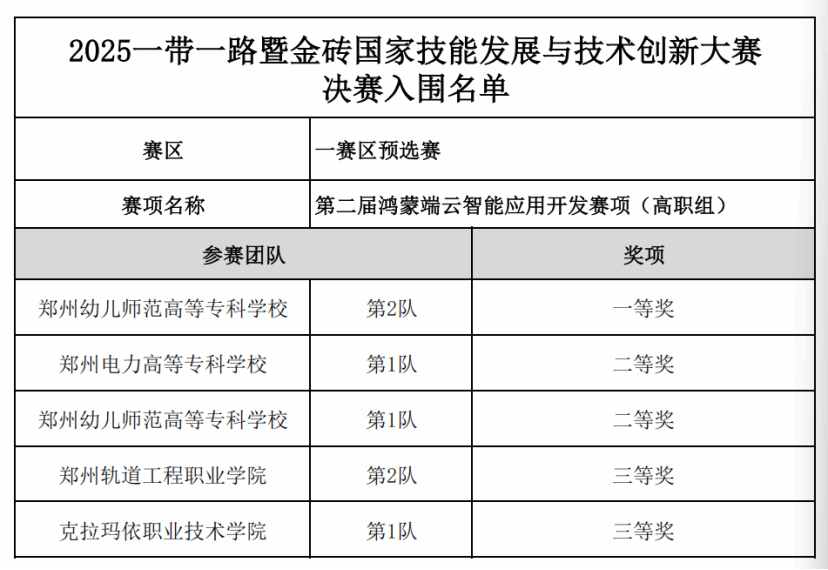 “2025 一带一路暨金砖国家技能发展与技术创新大赛 —— 第二届鸿蒙端云智能应用开发赛项(一赛区)”圆满收官,我们谨向所有晋级决赛的选手表示热烈祝贺,并期待大家在接下来的比拼中再创佳绩,续写属于自己的竞技精彩。