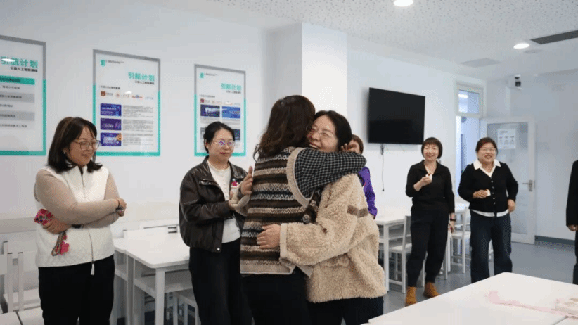 随着老师们两两互道祝愿,教室里顿时笑声与掌声交织,原本埋头备课的疲惫也在这一轻松的互动中逐渐消散。