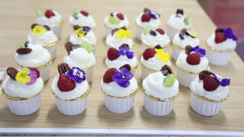 在布置得雅致温馨的教室内,暖黄的灯光裹着蛋糕的甜香扑面而来:桌上码放着点缀糖霜水果的纸杯蛋糕,精致礼盒整齐排列。老师们陆续走进教室,眼底的笑意随暖光渐浓,围聚在桌旁,等待这场生日会的开场。