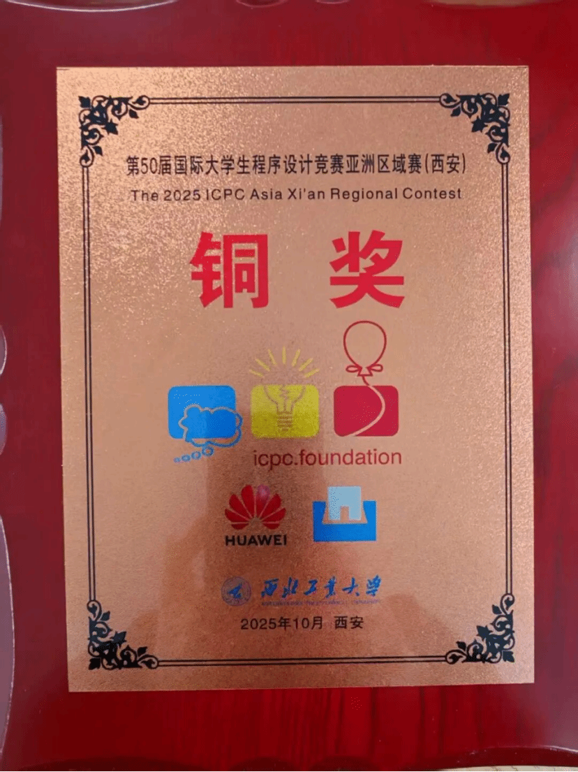 在本次比赛中,由信息工程学院林川翔、吴天乐、刘家瑞三位同学组成的参赛队伍(指导老师:张文胜),在长达五个小时的紧张赛程中,凭借扎实的编程功底、灵活的算法设计、默契的团队协作以及沉着冷静的心理素质,成功解决多道难题,最终在众多强队中脱颖而出,斩获铜奖。他们的出色表现,赢得了赛场对手和组委会的尊重与认可。