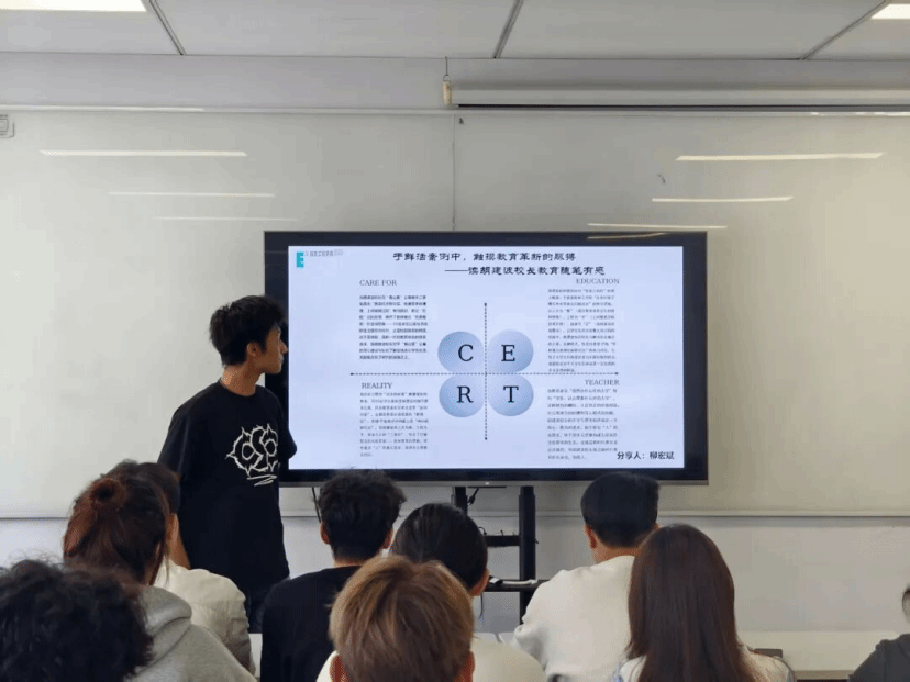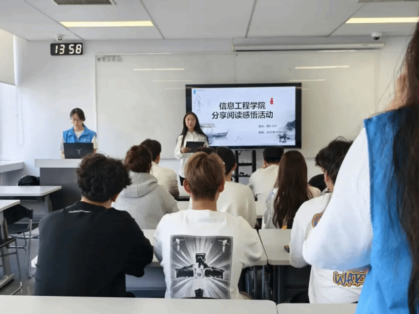 阅读向来是驱散迷茫、照亮前路的良方,尤其在大学生涯这段寻找方向的关键时期。一场以书为媒、以思想为桥的读书分享会于10月15日在信息工程学院大厅西 b211 圆满落幕。此次活动以胡建波董事长近期发布的推文为切入点,深度挖掘其背后的管理智慧与人文情怀,为与会者带来了一场启迪心灵的智慧盛宴。