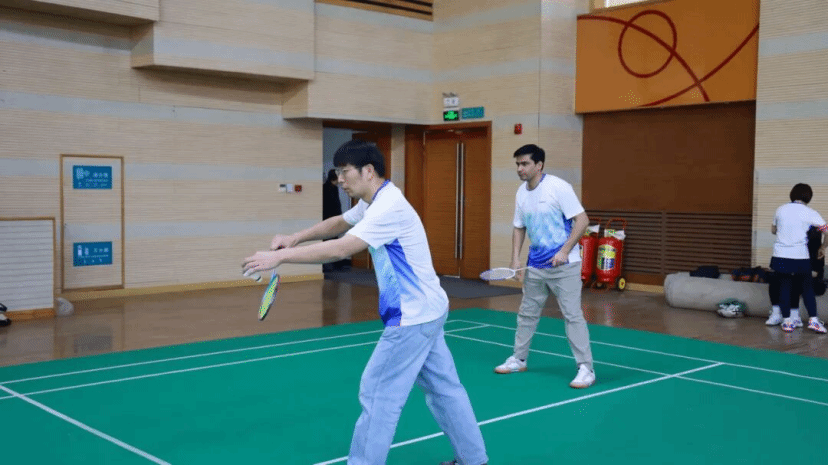 11 月 19 日的关键晋级赛中,团队整体发挥稳定:张秀芳老师在女单对决中状态稳定,攻防转换流畅,最终以 21:13 的比分顺利取胜;男双组合 Adil 与盛攀龙节奏契合,跑位灵活,网前封网与后场突击配合默契,直落两局以 2:0 击败对手;曹茸与孟博老师的女双组合遭遇顽强抵抗,在比分交替上升的三局较量中,凭借更稳定的心态和战术调整,以 2:1 险胜对手。