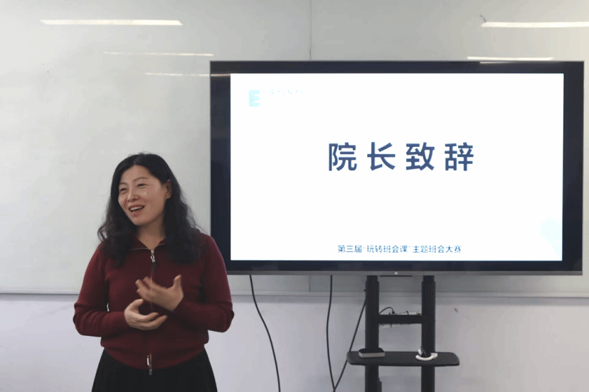 值得一提的是,院长刘欣老师与院长助理徐以美老师亲临现场指导,为参赛师生带来了极大的鼓舞与肯定。徐以美老师在讲话中深情寄语,鼓励全体师生共同投入班会课这一特殊课堂——教师以匠心设计点燃学生的思想火花,学生以真诚参与回应教师的用心引导。师生双方在平等对话中搭建成长的桥梁,让每一节班会课都成为涵养学风、滋养心灵的“精神养分”,在温暖互动中共同收获思想与情感的双重成长。