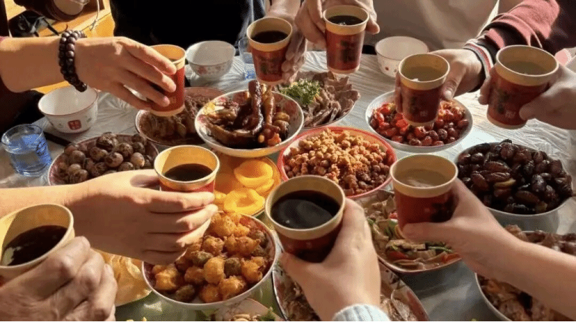 厨房永远是除夕最热闹的地方。炖锅咕嘟作响,飘出肉骨汤的浓香;油锅滋滋翻滚,炸出金黄的春卷;砧板笃笃轻响,切出鲜嫩的鱼片。长辈们一边翻炒,一边念叨着每道菜的讲究:整鱼要留头留尾,象征“年年有余”;饺子要包得饱满,藏着“招财进宝”的期许;年糕甜糯黏牙,盼着日子“步步高升”。每一道菜都不是简单的食材堆砌,而是家人把爱揉进烟火里的温柔。傍晚时分,一家人围坐餐桌,暖黄的灯光落在碗筷间,酒杯碰撞的脆响里,有对旧年的总结,也有对新年的展望。求学路上的困惑、教研中的难题,在家人的笑语里渐渐消融,原来团圆的意义,就是让所有奔波都有了归处。