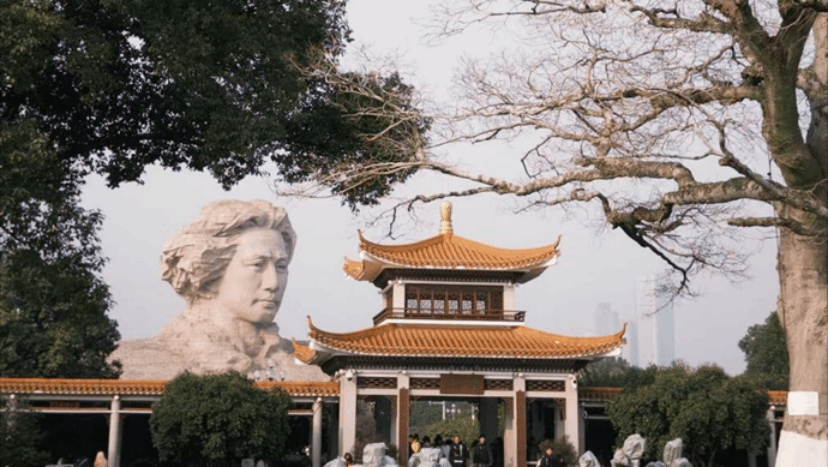 苍松翠柏掩映间,青年雕像静静伫立,与飞檐翘角的亭阁遥遥相望。枝叶轻摇,诉说着百年前的热血与理想,在橘子洲的风里,将红色根脉与新春的希望,一同藏进山河岁月。