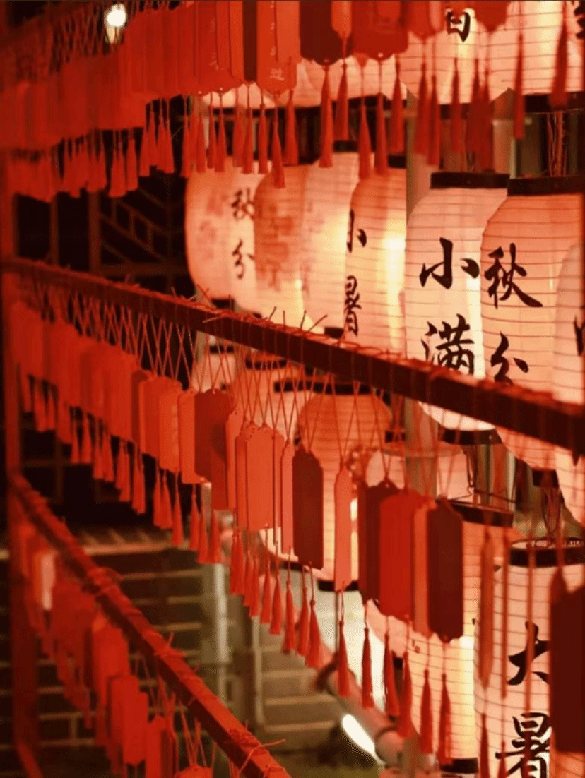 红灯盏盏,映着写满期许的祈福牌,暖黄的光晕漫过青瓦木窗。每一盏灯都牵着一份牵挂,在夜色里温柔闪烁,照亮归人前行的路,也把“家”的温度,揉进了新春的晚风里。