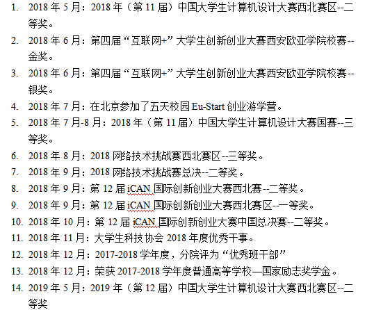人物介绍:张苗娜,现物联网1702班学习委员、智慧物联网科技创新工作室负责人。2018年6月第四届“互联网+”大学生创新创业大赛西安欧亚学院校赛金奖;2018年7月在北京参加了五天校园Eu-Start创业游学营;2019年8月2019网络技术挑战赛西北赛区一等奖;2019年9月第13届iCAN国际创新创业大赛西北赛区二等奖;2019年11月:第13届iCAN国际创新创业大赛中国总决赛三等奖;2019年12月2018-2019学年度普通高等学校--国家励志奖学金。