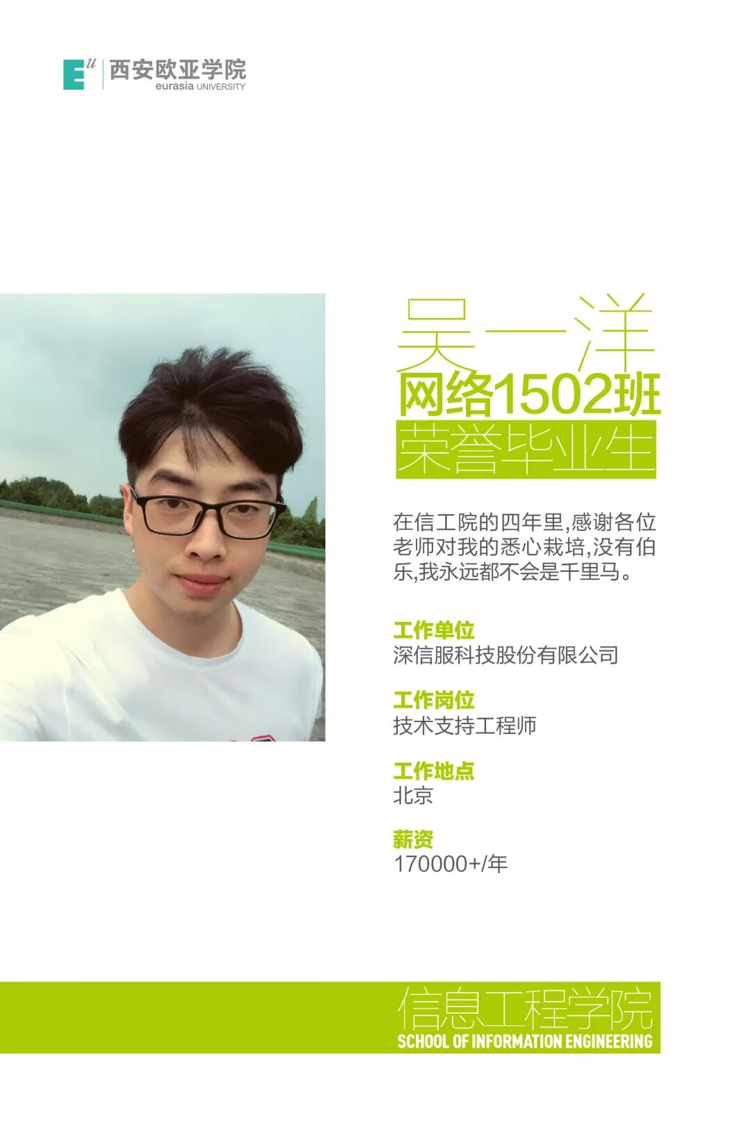 吴一洋:在信工院的四年里,感谢各位老师对我的悉心栽培,没有伯乐,我永远都不会是千里马