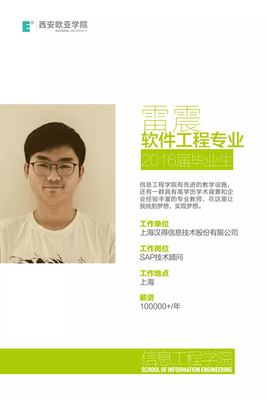 雷震:信息工程学院有先进的教育设施,还有一群具有高学历学术背景和企业经验丰富的专业教师,在这里让我找到梦想,实现梦想。